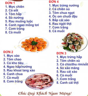 ♣ Ngoài ra quý khách có thể tự lên thực đơn theo ý muốn. Khách sạn rất hân hạnh được phục vụ mọi yêu cầu của quý khách. Kính chúc quý khách ngon miệng.